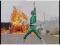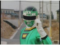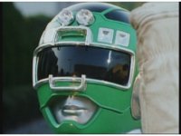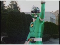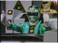 Adam morphs into Green Turbo Ranger via the power of Desert Thunder. |