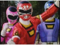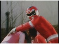 The Rangers run off the remaining citizens, zoom in on Red as they face forth. |
