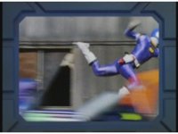Green uncrosses arms to a double thumbs up, then shifts gear, causing the Turbo Megazord to leap up and kick its Green foot forth three times quick into Demon Racer II's face, knocking him down. |