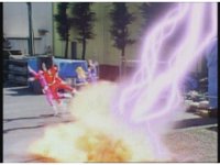 Tommy morphs into Red Turbo Ranger via the power of Red Lightning. |