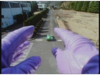 POV, then pan right, as Demon Racer mark II, drives his car forth into fleeing Japanese people. |