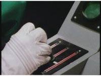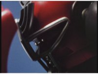 In Megazord cockpit, zoom in on Red as he crosses arms, raises a thumb, then pulls down gearshift. |