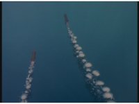 Pair of torpedoes tear through the water. |
