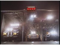 Track around before the Turbozords in their garage hangar, all headlights coming on at once. |