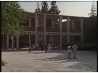 Short pan down on exterior of Angel Grove High School, students begin heading away from the school. |