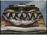 Blue & Green begin to react, astride the ladder, as Blazinator slides it explosively through roof structures, until the pair plop to the ground below. |