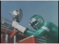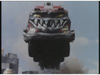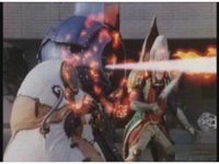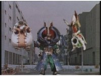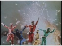 Red whips out his Auto Blaster, and shifts it into Turbo Mode, all five Rangers fire their Blasters skyward, causing Blazinator to spark burst, fall from the sky, and explode. |