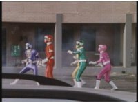 Kat morphs into Pink Turbo Ranger via the power of Wind Chaser. |