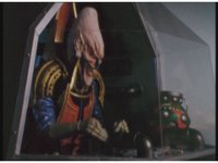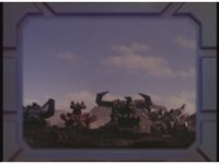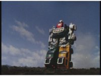 This same shot of the Megazord cockpit quickly tracks left repeatedly to imply motion a few times. |