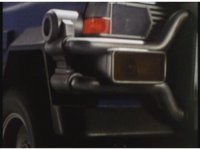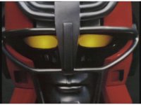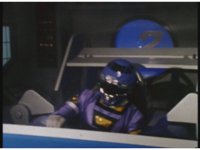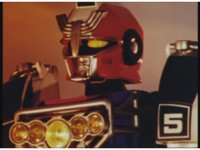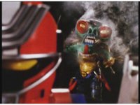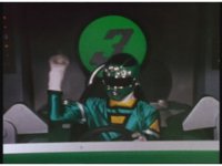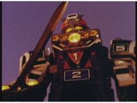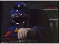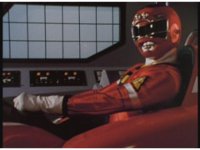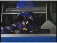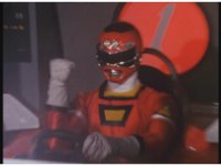Red inexplicably pulls out the manual, and reads up, before pressing button, causing the Turbo Megazord's head to become exposed out the back of Red Lightning. |