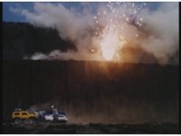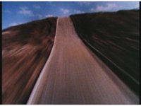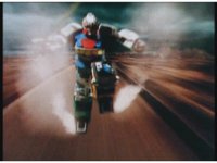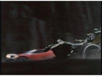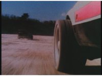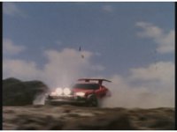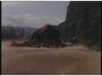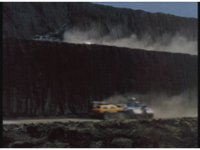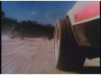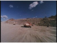 Close left side shot of Red Lightning speeding through a quarry, turning right. |