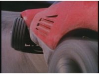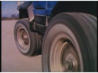 Close on front edge of Red Lightning & Mountain Blaster, each shifting their tires into new positions while in motion. |