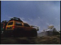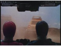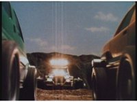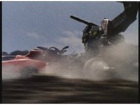 Desert Thunder & Dune Star are spaced part, sharp zoom in on cockpits as the two Rangers sharply turn their wheels and brake, connecting and turning around, driving backwards together. |