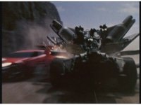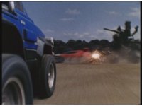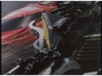 Evil vehicle's claw scrapes against the back end of Red Lightning. |
