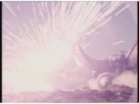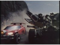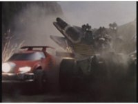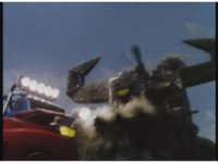 Evil Vehicle is turning around slowly, when the combined four Turbozords plow explosively through it. |