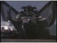 Zoom in on Pink as she freaks out and flips switch above her, causing Wind Chaser to split in half, causing the front Evil Vehicle to pass between the Turbozord halves, slamming into the back Evil Vehicle explosively. |
