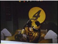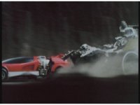 Red Lightning is racing along when Elgar's evil vehicle cuts in front of it, Elgar taunting Red, as he tries and fails repeatedly to pass him. |