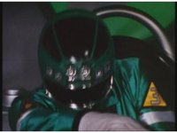 Adam morphs into Green Turbo Ranger via the power of Desert Thunder. |