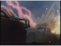 Another Evil Vehicle appears, firing electric bolts forth, causing explosions as Desert Thunder/Dune Star docks with Mountain Blaster/Wind Chaser. |