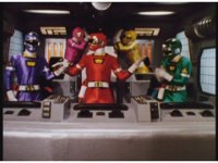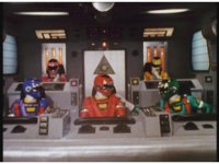 Zoom out as Yellow & Green are now in Turbo Megazord cockpit, talking and gesturing to Pink & Blue. |