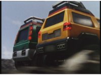 Blue spins steering wheel around, hits the breaks, and sharply turns Mountain Blaster around, skidding to the side out of the way before charging forth, slamming explosively into the Evil Vehicle on Red Lightning's tail. |