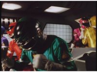 Red steps on brake, causing the wheels to lock up, and sending the combined five Turbozords up into a sudden standing position, the Rangers watching. |