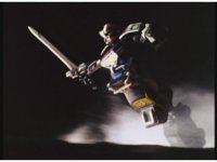 Turbo Megazord suddenly ceases spinning, facing our left with saber held forth. |