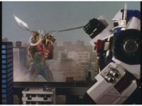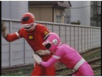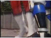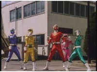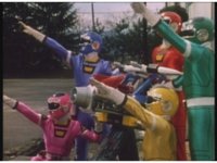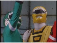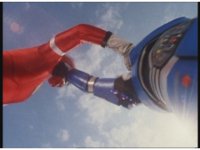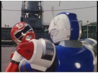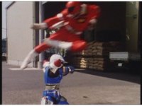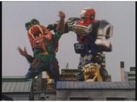 Red steps on brake, causing the wheels to lock up, and sending the combined five Turbozords up into a sudden standing position, the Rangers watching. |