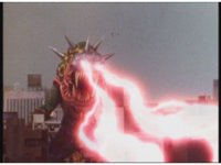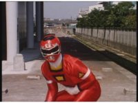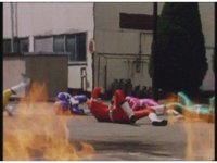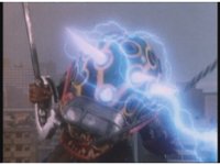 The Rangers rush to a safe spot, where, Red talks, and the team raise fists in response. Terrortooth talks down at them, then fires electricity from his metal visor, fire bursting the Rangers off their feet. |