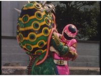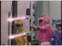 Pink falls down, Terrortooth approaches, gets hit with a burst from Rangers' Turbo Weapons, gets bonked on the head by them, before they rally around Pink, give her Wind Fire, she fires energy arrows explosively into monster. |