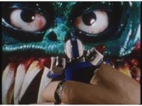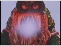 Blue Senturion talks in Terrortooth's giant hand, before pan left onto monster's face. |