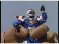 Turbo Megazord holds Terrortooth in place, and pries open his left hand, releasing Blue Senturion, who drops down to safety. |