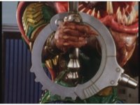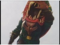 Cuts follow-up intercut of Rangers reacting with monster raising blade. |