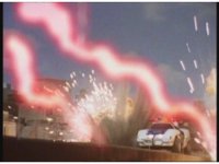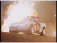 Terrortooth drives eyebeams at Robo Racer, exploding around the Zord but failing to stop its progress. |
