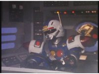 In the Megazord cockpit, all five Rangers lift their Turbo Keys, then raise them, before Red inserts his on the console, and turning. |