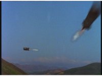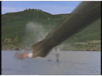 Pair of torpedoes rise up from the lake and shoot off into the sky. |