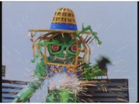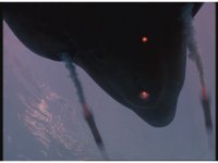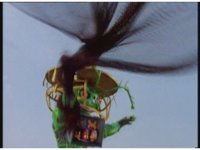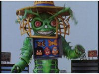Shrinkasect prepares to attack, Robo Racer whips out its riot shield, and blocks the monster's energy eyeball assault. They bounce off & explode harmlessly. |