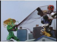 Shrinkasect throws a net over Turbo Megazord, ensnaring it within. |