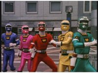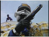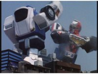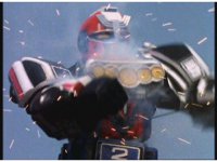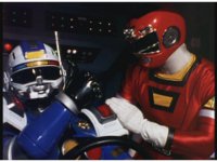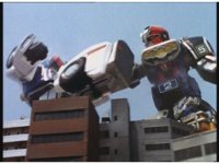 Red steps on brake, causing the wheels to lock up, and sending the combined five Turbozords up into a sudden standing position, the Rangers watching. |
