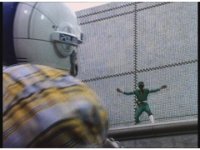 Blue Senturion suddenly unconscious, Red strips him of his jacket, causing him to wake up, talk to him, and soon give a thumbs up. |