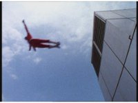 Zoom in the cockpit onto Red, as he gives a thumbs up, slides off his safety harness and exits. |