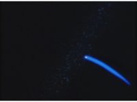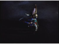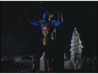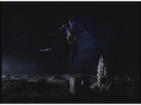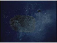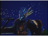As the asteroid quakes, Dreadfeather stands up and takes flight, escaping just as the whole place splits in half, releasing two blobs of energy, one blue, one red, which streak away. |