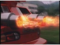 Trims start to remove visibility of Japanese writing on box; cuts follow-up of cars flashing into their spirit animals. |
