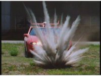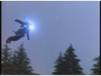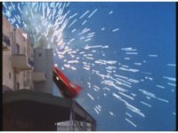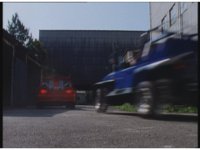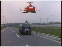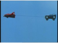 Freeze frame at end; fades to black. Cuts follow-up of cars flying to Earth. |