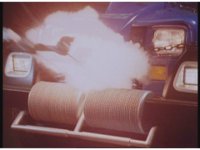 Lightning Cruiser's thrusters ignite. Its tires cease rotating at it lifts off the ground with a burst of smoke. |