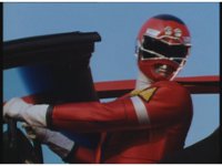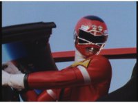 Close on Lightning Cruiser tilting from its left to its right as Red Ranger pilots. |