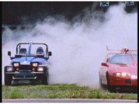 Red flicks some dirt off Lightning Cruiser, causing the car to flash headlights. |