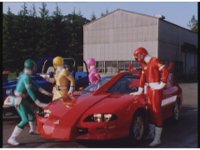 Red gets out of Lightning Cruiser, as Green, Yellow, & Pink come over and admire the vehicle, just before Blue pulls up in Storm Blaster. |
