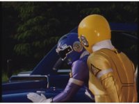 Storm Blaster, with Lightning Cruiser right above it, drives the Rangers down an empty road. |