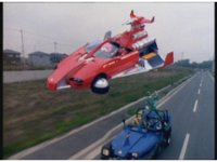 Red finishes driving Lightning Cruiser through the dust, then takes flight with it again. |